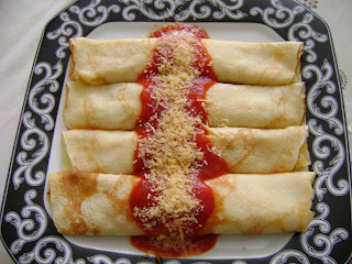 Essa receita de massa não rende muito, se quiser uma quantidade maior, dobre a receita (quando tem mais gente para comer, faço o liquidificador quase cheio e costumo fazer um recheio de carne moída). Como já aprendi a fazer, não meço mais e faço a quantidade que eu quero. O recheio dá para 4 panquecas bem recheadas.